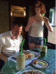 Dessert was a peach, halved and baked with brown sugar and butter, paired with scoops of vanilla ice cream. She would have broken out a bottle of wine but said she thought she might get arrested for dabbling in alcohol.